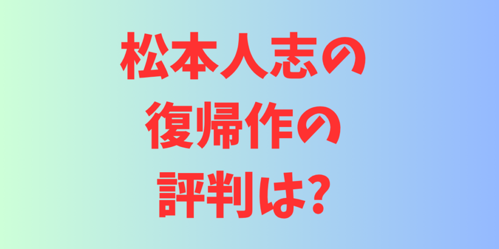 松本人志の復帰作の評判は?ファンとアンチの反応を徹底調査!