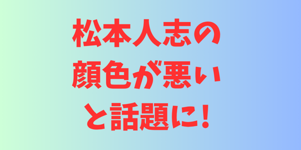 松本人志の顔色が悪いと話題に!病気や加齢など変化の理由をリサーチ!